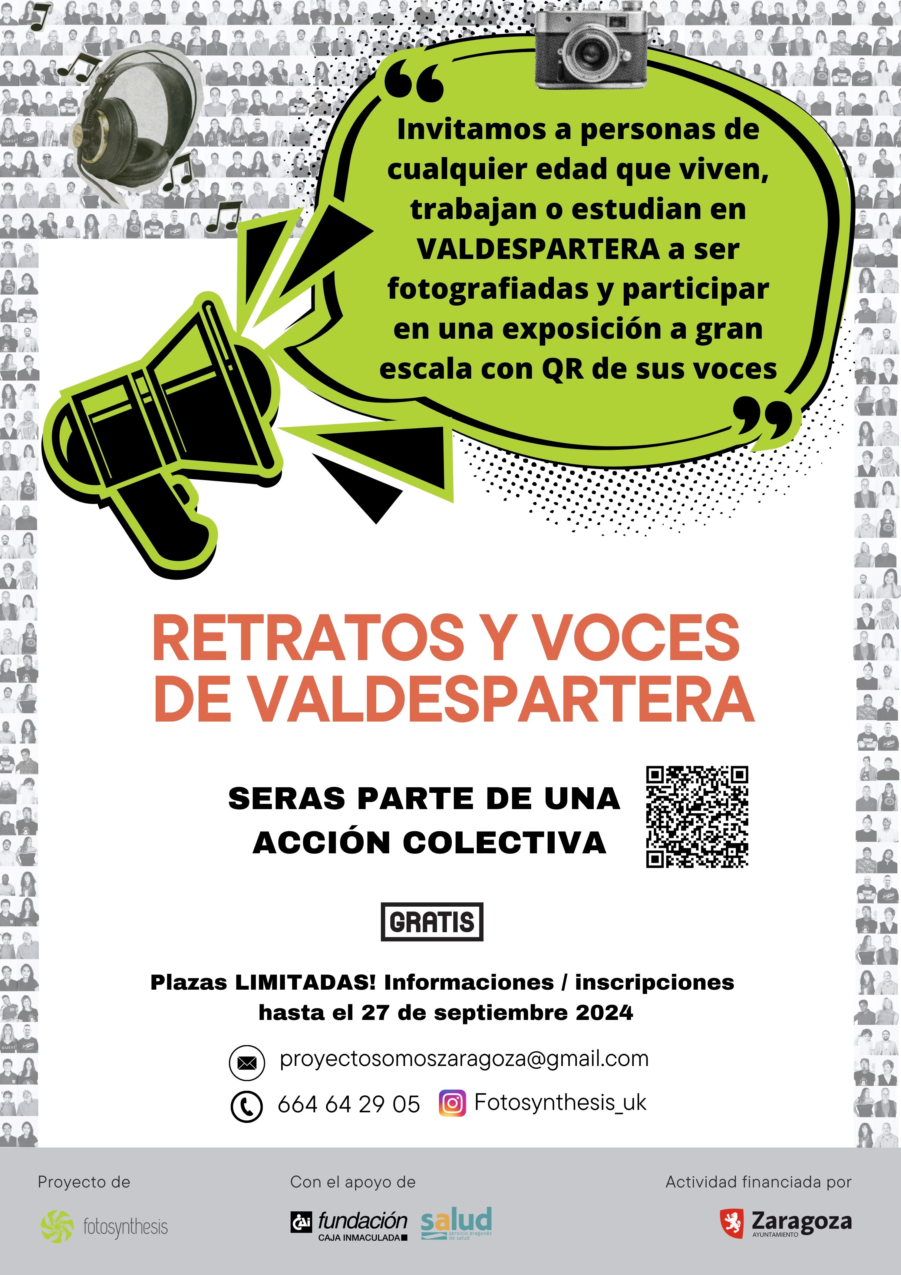 El proyecto Inside Out es un proyecto de arte participativo global que permite a todo el mundo compartir sus historias no contadas mediante la creación de una obra de arte público. Desde 2011, cerca de 600.000 personas de 152 países y territorios han participado en el proyecto Inside Out. La primera acción de Inside Out en Zaragoza fue liderada por Fotosynthesis, fue en el barrio del Gancho al principio del 2024, una de las primeras acciones mundiales que incluyó QR de audio acompañando los retratos. Ahora, será en Valdespartera con "Somos Valdespartera”. Ambas acciones son financiadas gracias al apoyo del Ayuntamiento de Zaragoza.